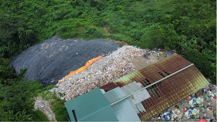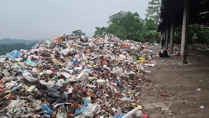 Toàn cảnh bãi rác tại thị trấn Mãn Đức, huyện Tân Lạc.
