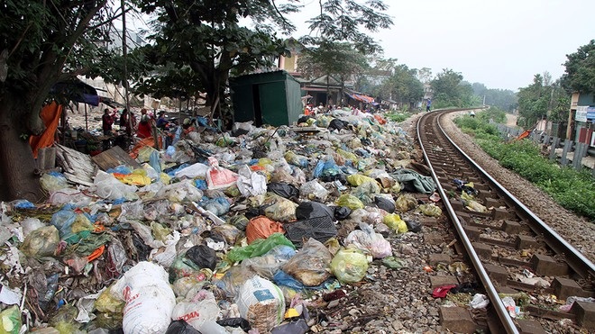 Người dân TT.Hương Khê tập kết rác sát đường sắt bắc - nam