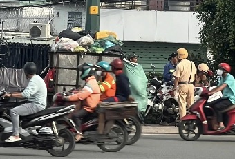 Anh Nguyễn Công Hậu, Hợp tác xã (HTX) Môi trường quận 10, TPHCM cho biết, gia đình anh có 5 người (2 vợ chồng và 3 cháu ngoại), cuộc sống mưu sinh chỉ trông chờ vào việc đi thu gom, đổ rác, mỗi tháng thu nhập khoảng 6 triệu đồng. Gần đây, lực lượng cảnh sát giao thông (CSGT) tăng cường xử phạt các phương tiện thô sơ, xe chở rác của anh đã bị thổi phạt 6 lần, mỗi lần phải đóng phạt 1 triệu đồng. “Nếu tình trạng này kéo dài, nguồn sống của gia đình tôi ngày càng khó hơn”, anh Hậu than thở.