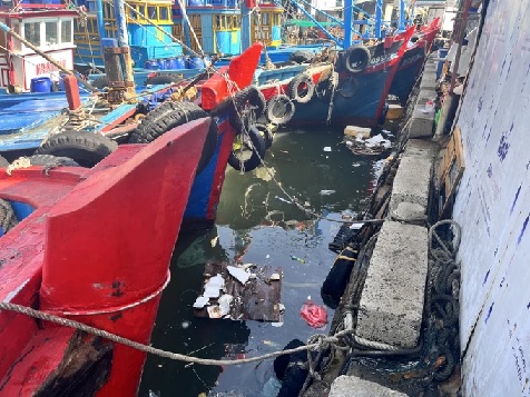 Theo ghi nhận của phóng viên, sau khi xử lý, nội tạng cá được một người dùng vòi xịt thẳng ra biển, kèm theo đó là rác thải nhựa. Tại đầu mương nước xả ra biển, có mùi hôi nồng nặc, vùng nước biển phía dưới có màu đen đục, rác thải nhựa nổi lềnh bềnh phía dưới các tàu cá. Nhiều rác thải nhựa trôi đến gần tuyến tàu du lịch.
