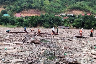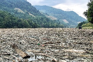 Rác hỗn tạp trôi từ Lào đổ về lòng hồ thủy điện Bản Vẽ
