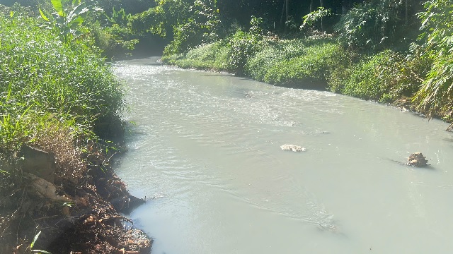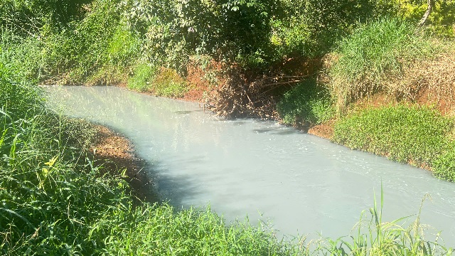 Dòng suối bị ô nhiễm nghiêm trọng, có màu trắng đục, mùi hôi thối nồng nặc