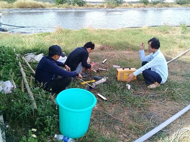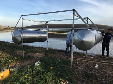 Lắp đặt phao đỡ máy khuấy chìm – Công trình Xử lý nước thải Trung tâm heo giống hạt nhân cụ kỵ GreendFarm Asia, ĐăkNông.