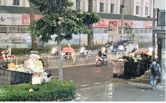 Hàng ngày, những người thu gom rác phân loại rác ngay trên vỉa hè, để tràn ra đường, bít lối đi của người đi bộ. Buổi tối, xe thu gom rác đậu cả hai bên lối ra vào tòa nhà, gây nguy cơ mất an toàn giao thông. Không chỉ vậy, điểm thu gom rác tự phát còn là nơi dừng nghỉ của một số tài xế xe ôm, xe công nghệ và họ cũng đi vệ sinh nơi đây. Người đi bộ mỗi lần đi ngang qua phải giơ tay bịt mũi.