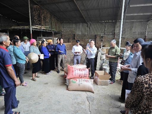 Cán bộ kỹ thuật trao đổi với các hộ hội viên nông dân xã Nghĩa An, thị xã Nghĩa Lộ, tỉnh Yên Bái về việc ứng dụng công nghệ sinh học trong xử lý chất thải chăn nuôi.