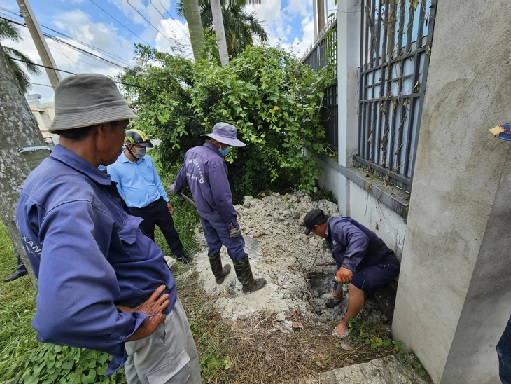 Đến 12h cùng ngày, đường ống xả thải của Công ty Thuận Thiên đã được khơi thông sau 1 tháng bị Công ty Tân Đức dùng bao đất, bê tông bịt lại.